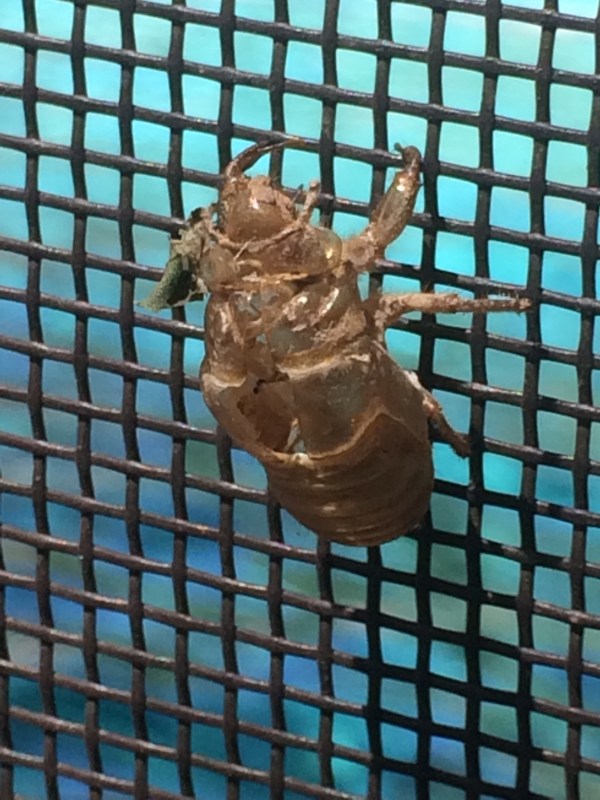 The cicadas have been making their (very) loud chirping. Is chirping the right word? Maybe song is better. This is one of the shells they shed as they grow. Kind of eerie looking. I've not actually laid eyes on the living thing.